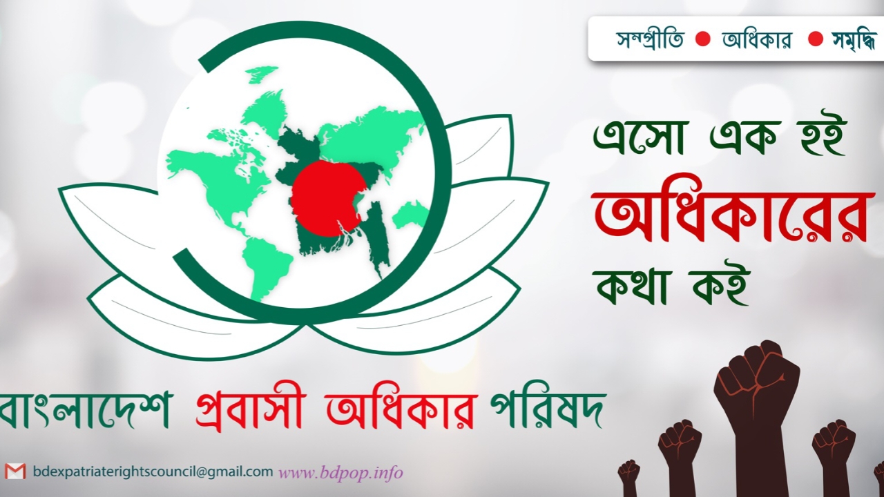 বাংলাদেশ প্রবাসী অধিকার পরিষদ বিশ্বের ৫০টির অধিক দেশে অবস্থানরত হাজার হাজার প্রবাসী বাংলাদেশীদের নিয়ে একযোগে ঐক্যবদ্ধভাবে প্রবাসীদের যৌক্তিক অধিকার আদায়ে, আর্থ-সামাজিক উন্নয়ন ও কল্যাণে প্রতিনিয়ত কাজ করে যাচ্ছে। প্রবাসীদের যৌক্তিক অধিকার আদায়ের লক্ষ্যে সকল বাংলাদেশি প্রবাসীদের আমাদের সাথে যুক্ত হওয়ার উদাত্ত আহ্বান জানাচ্ছি। "এসো এক হই অধিকারের কথা কই" "প্রবাসীদের অধিকার আমাদের অঙ্গীকার"।
